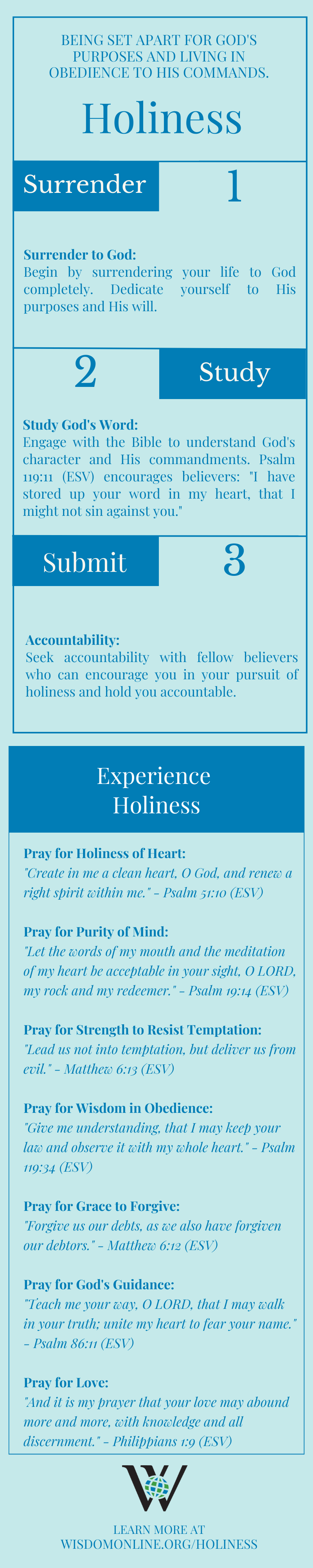 Prayer and Intimacy: Cultivate a deep prayer life to grow in your intimacy with God. Seek His guidance, strength, and wisdom in pursuing holiness.