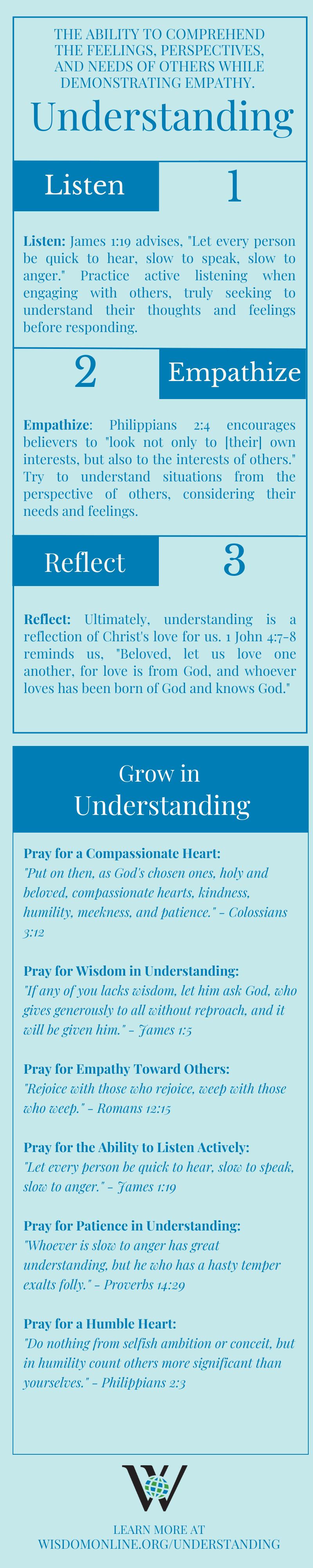 - Reflect Christ's Love: Ultimately, understanding is a reflection of Christ's love for us. 1 John 4:7-8 reminds us, "Beloved, let us love one another, for love is from God, and whoever loves has been born of God and knows God."